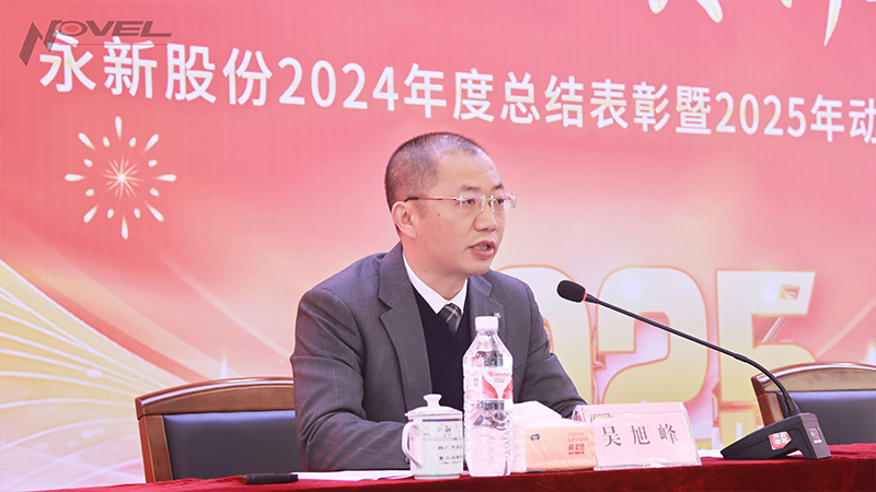吳旭峰副總經理主持大會。吳總指出,2025年公司全體要緊緊跟隨董事會的正確領導,以奮進之姿,堅守崗位職責,達成工作使命,為公司謀變破局,挺膺擔當,有所作為,共同譜寫永新之歌新華章。