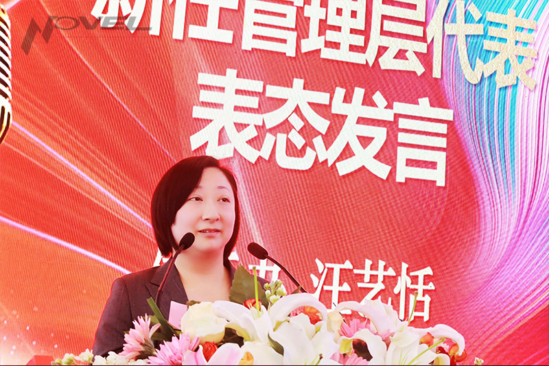 管控組組長、總經理助理孫峻宣讀《關于2025年中層管理人員聘任的決定》。體系辦經理兼管理者代表汪藝恬作為新任管理層代表作表態發言。